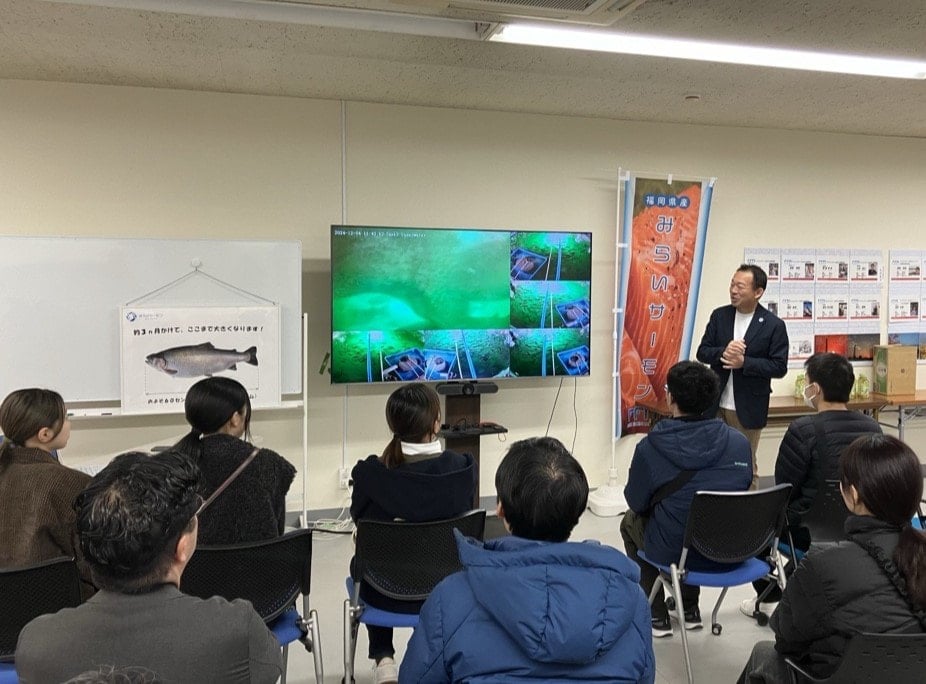 北九州市立大学 国際環境工学部の学生14名がフィッシュファームみらい合同会社の豊前ファーム(九州電力豊前発電所、福岡県豊前市八屋2463-9)にお越しになり、学外実習の講師を篠﨑社長/CEOが務めました。