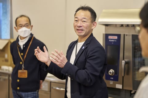 来場されたお客さまへ、篠﨑社長/CEOがみらいサーモンについて熱く話す場面も…。