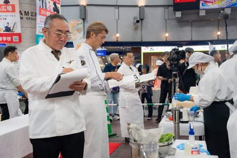 このように緊張感が漂う会場でも、審査員の皆さまは料理の味や見た目だけでなく、調理中の選手の所作などへも鋭い視線を送っておられました。