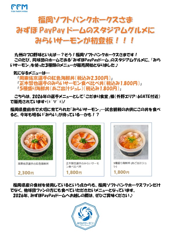 みらいサーモン、ついにドーム飯デビュー☆彡